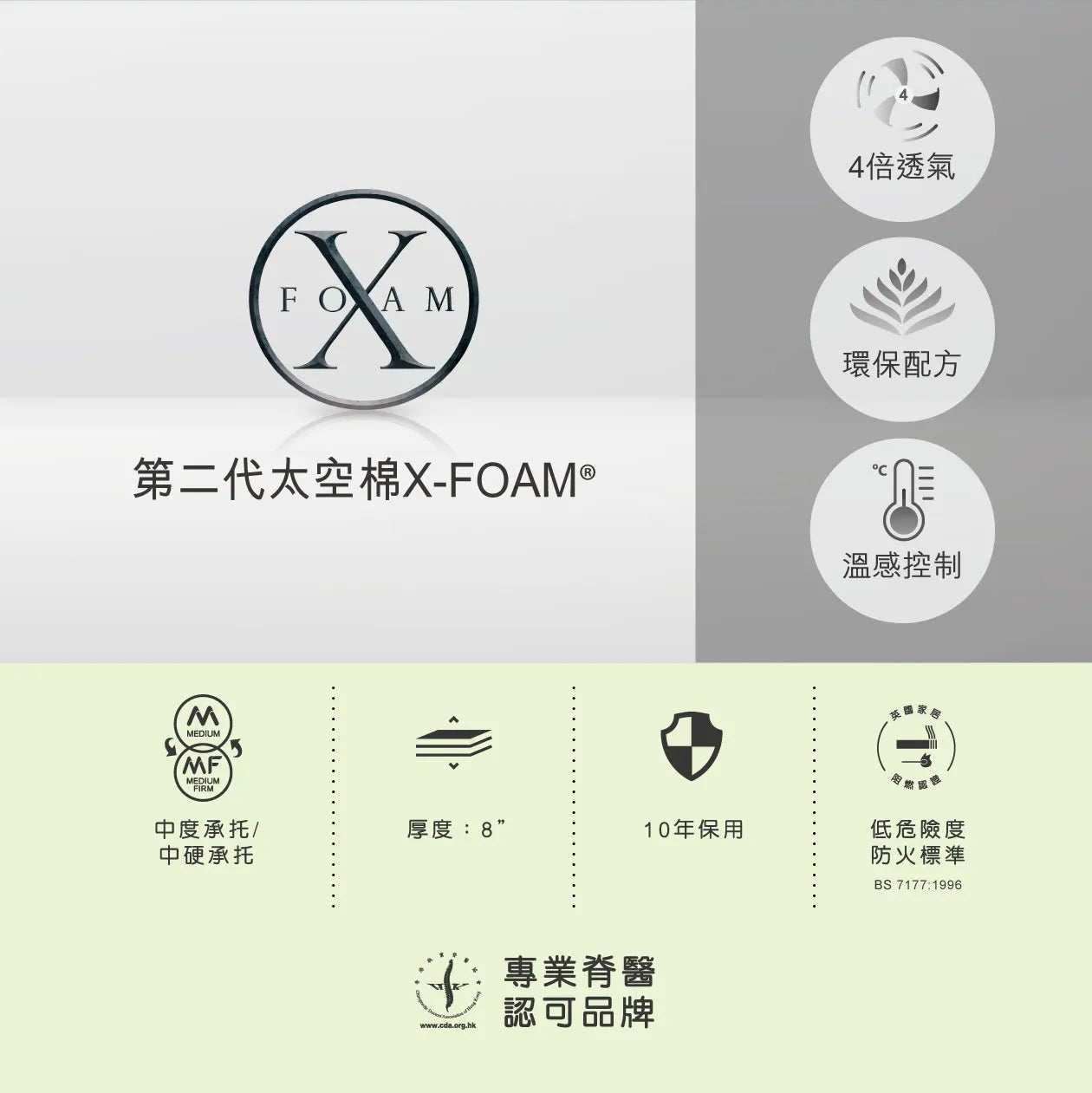透氣舒爽:第二代 X-FOAM® 太空棉 4 倍透氣設計,溫感控制,排走多餘濕氣熱力