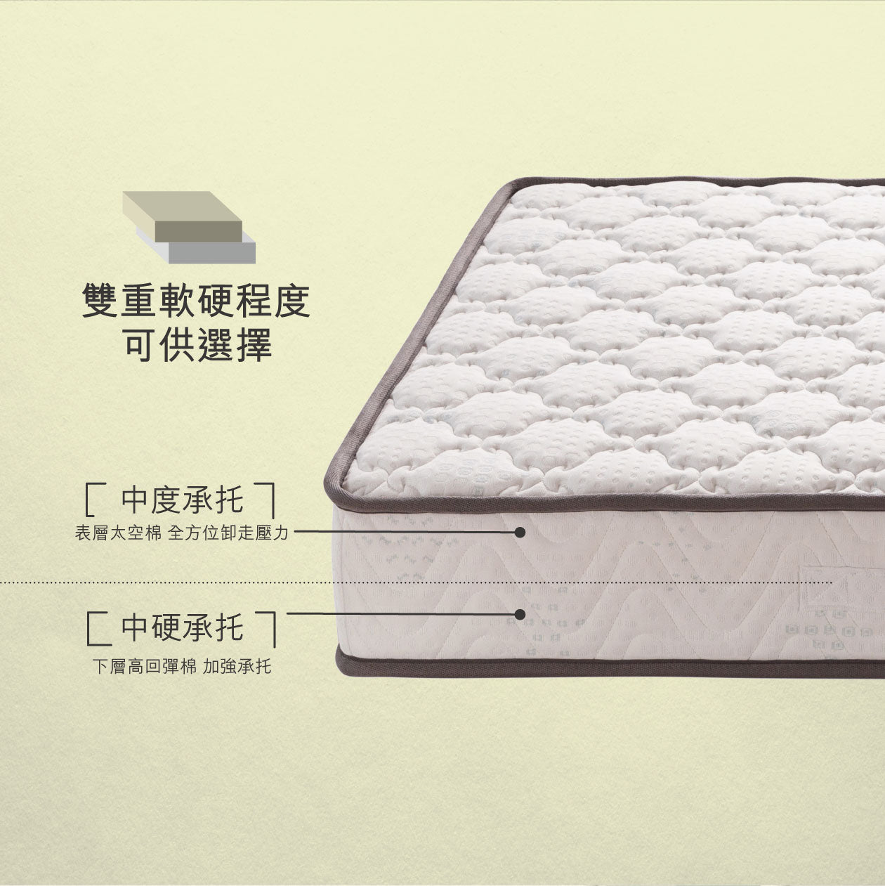 雙面承托:提供中/中硬雙面選擇,適合不同體質和睡眠習慣