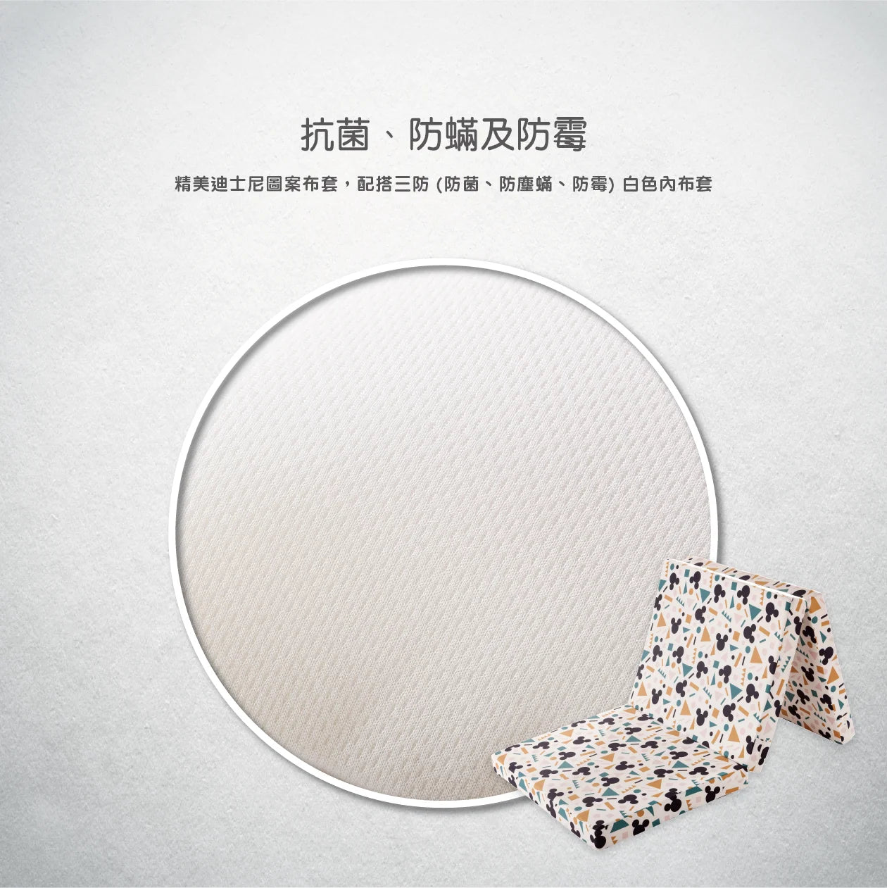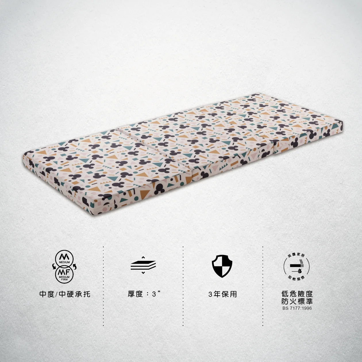 迪士尼輕便雙面三摺床墊,方便收納節省空間,隨時打開即時使用。雙面可用設計,分別提供中等及中硬睡感,能貼合身體曲線,並提供堅實承托,保護脊骨健康。